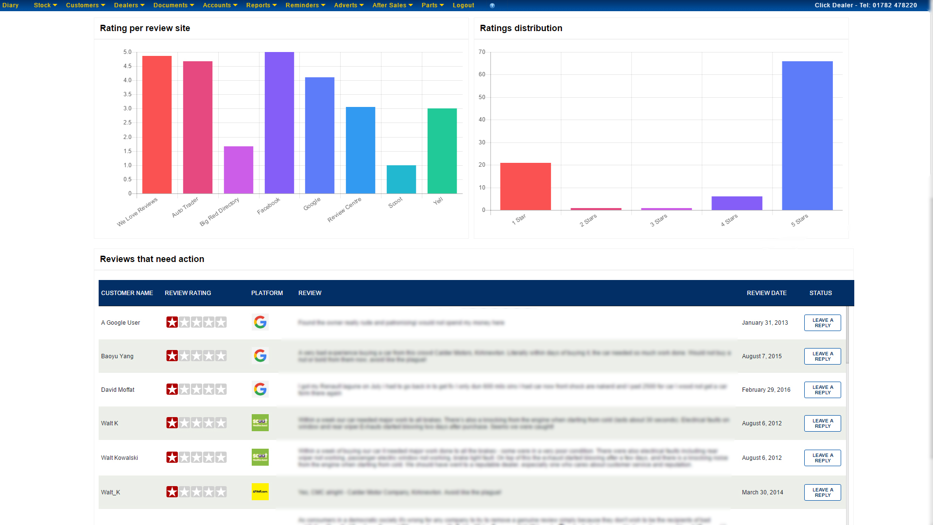 Click Dealer’s new bolt on feature to its core product offering is set to revolutionise customer intelligence in the automotive industry and has the functionality to protect dealerships from negative reviews by notifying them as soon as they are published. This then gives dealers the opportunity to reply to negative comments and try to sort out any issues as they arise.