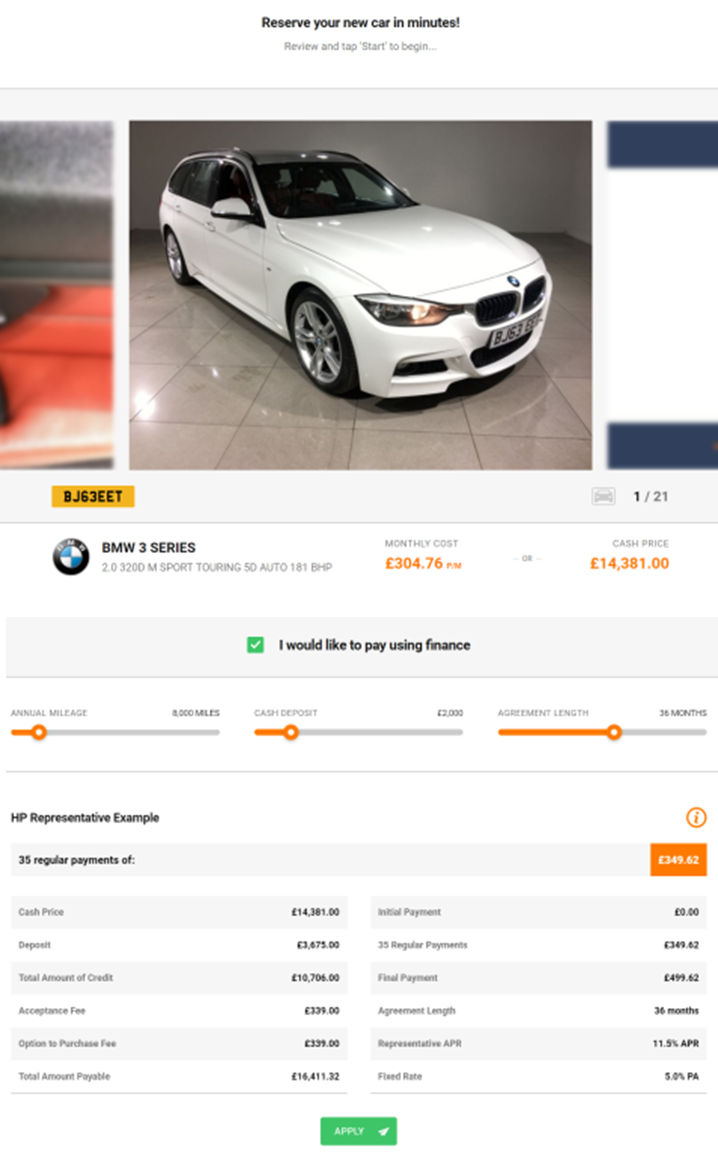 Although this situation is out of your hands, the experience may deter that customer from returning to your dealership in the future. There is, however, new technology available which will enable consumers to not only reserve online, but also arrange their own finance deal and receive a lender decision without your involvement.