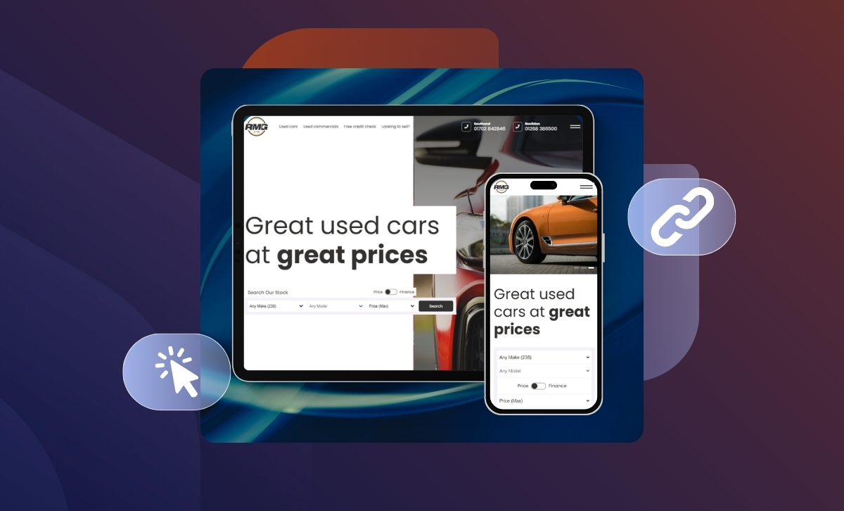 For car dealers, a website can be your own digital forecourt, and at Click, we can help you make that a reality. From customers browsing for their next vehicle from the comfort of their own sofa, straight through to making the purchase and getting the finance they may need with no more effort than a few mouse clicks.